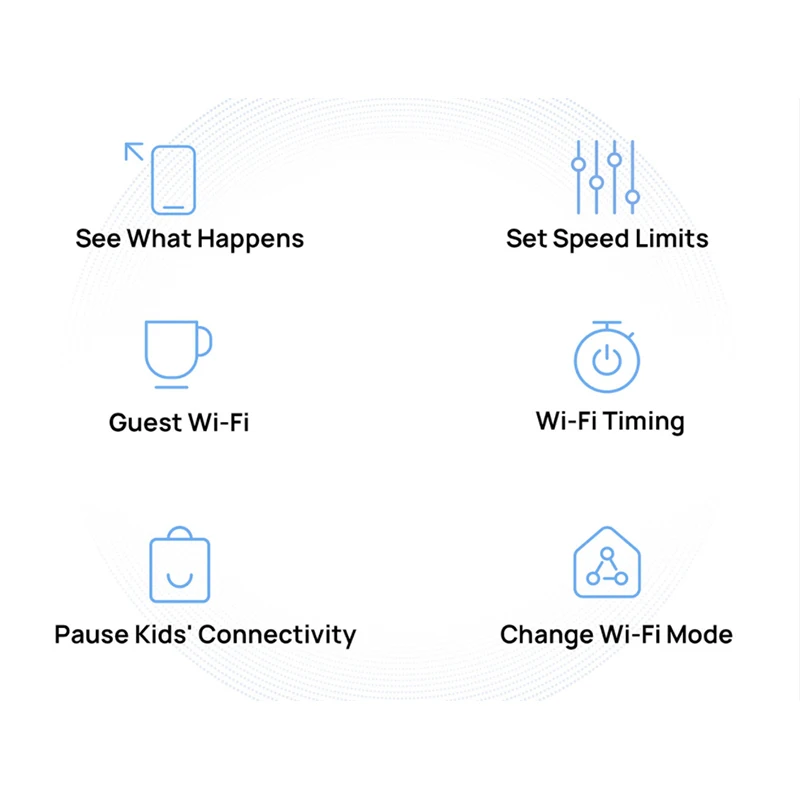 Управление Wi-Fi никогда не было проще. С приложением HUAWEI AI Life вы можете увидеть, что происходит, установить ограничения скорости, разрешить гостевые соединения, установить время Wi-Fi, пауза подключения на устройствах ваших детей и многое другое.