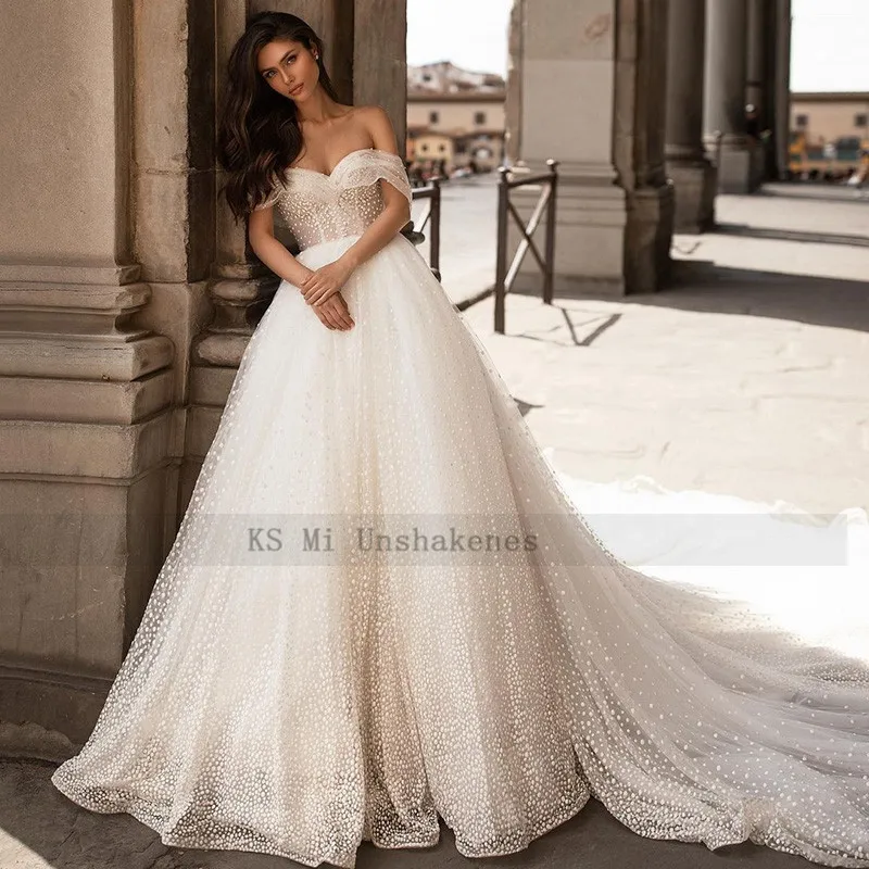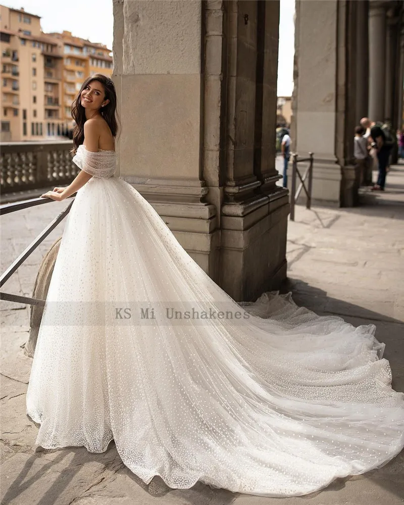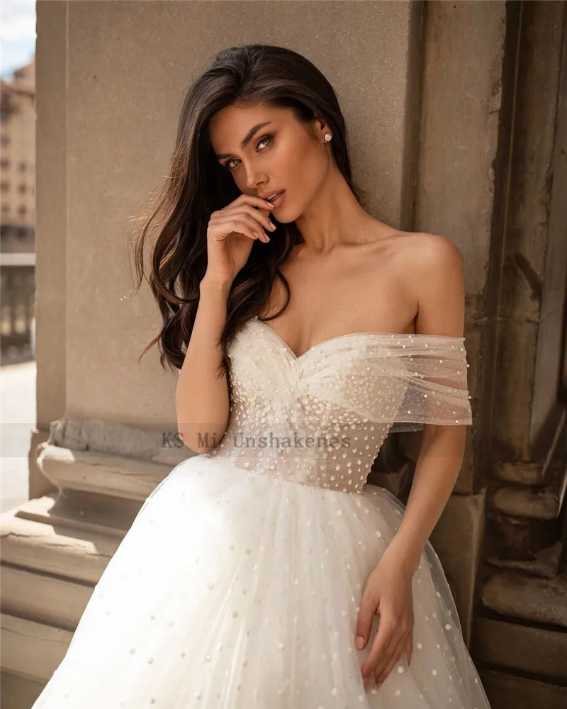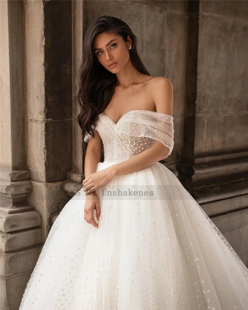 Свадебное платье в горошек, бальное платье, свадебные платья с открытыми плечами, арабские свадебные платья, индивидуальный пошив, 2021