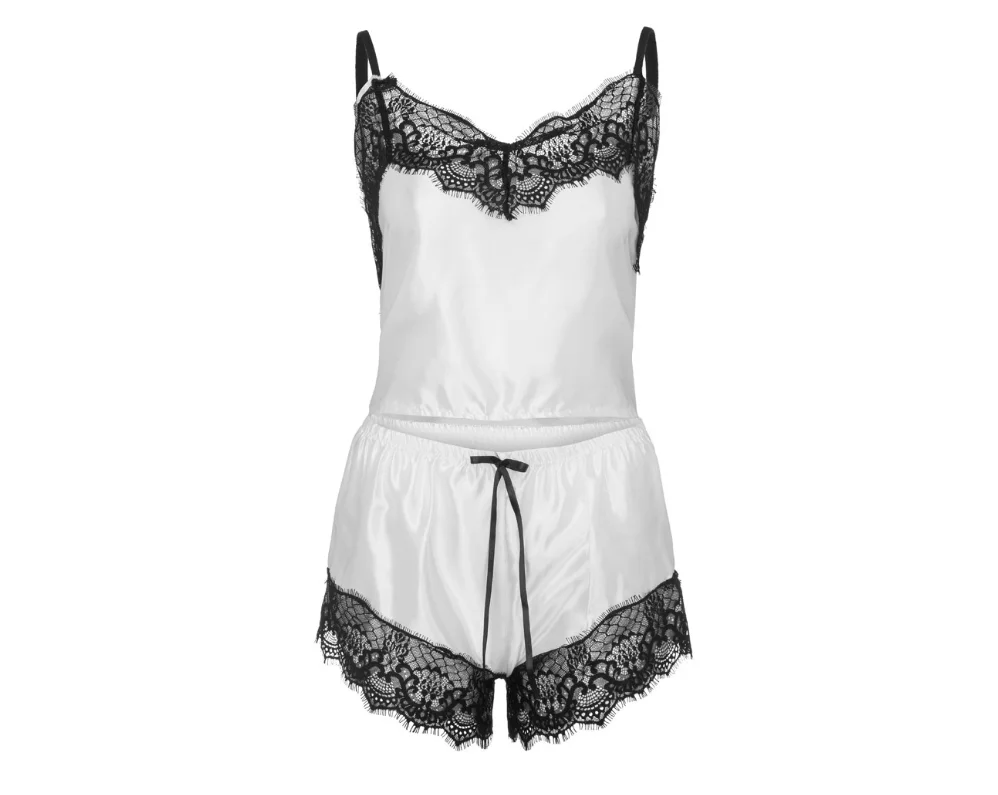 Лидер продаж 2021, домашняя одежда, Сексуальная атласная пижама, комплект из 2 предметов, кружевная Пижама с V-образным вырезом, милая майка без рукавов, топ и шорты