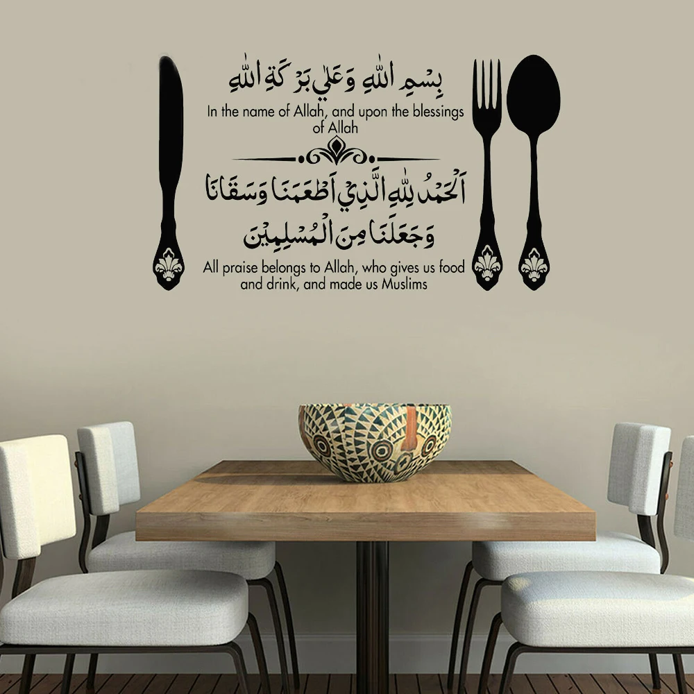 Исламские арабские наклейки на стену бисмилла ест Дуа Исламская каллиграфия Термоаппликации для кухни на стену домашний Декор виниловые настенные художественные росписи плакат