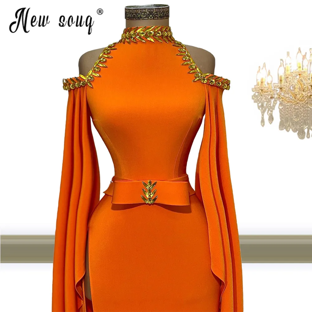 Оранжевое длинное платье с открытыми плечами, элегантное женское платье с блестками и высоким воротником, милое платье