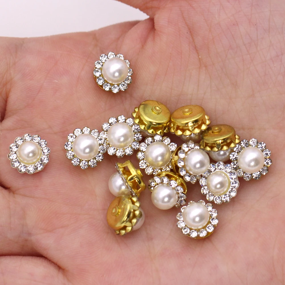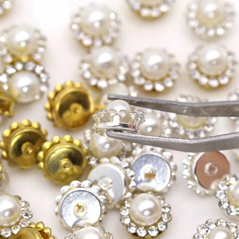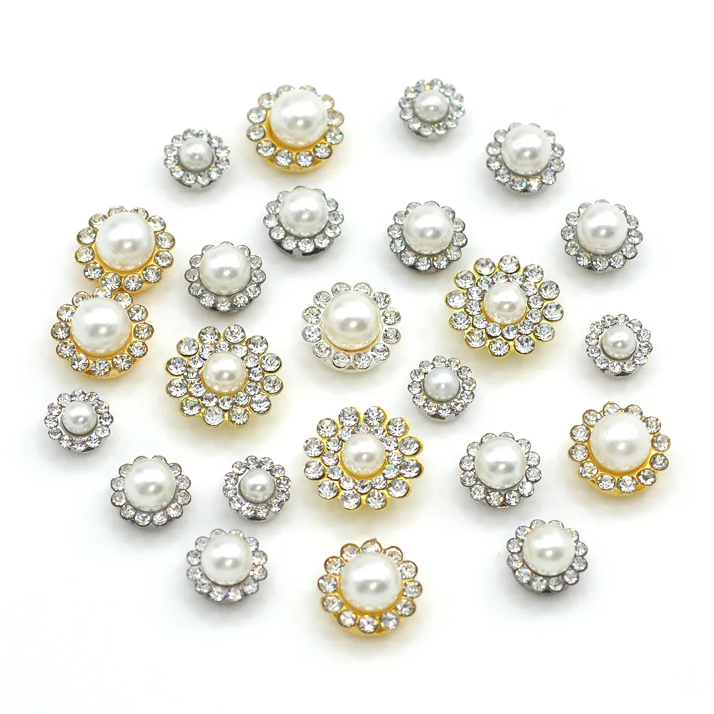 Блестящие кристаллы 20 шт. жемчужные пуговицы стразы, золотыесеребряные плоские задние Стразы с цветами для одежды, украшения для платья сделай сам