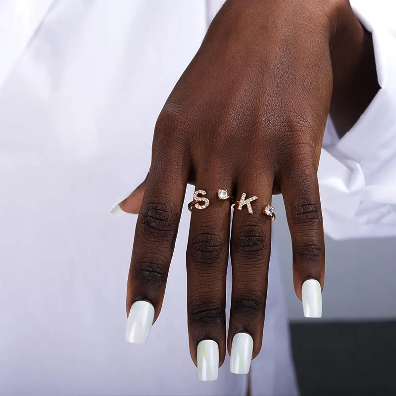 Кольцо с инициалом безразмерное из нержавеющей стали. Размер кольца: 7 - мне не пришлось менять, сразу хорошо подошло. Колечко выполнено так, словно оно из настоящего золота. Утончённый дизайн, цвет металла, блеск полировки и сверкающие камушки – прекрасное милое ювелирное изделие, которое можно носить долгие годы. Гипоаллергенно, не тускнеет, не окисляется, из прочной ювелирной нержавеющей стали. Смотрится интересно, символично и подойдёт для любой руки. Мне нравится. Спасибо.
