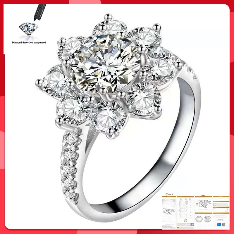 Кольцо из серебра 100% пробы с муассанитом, карат, 1 карат, 2 карат...