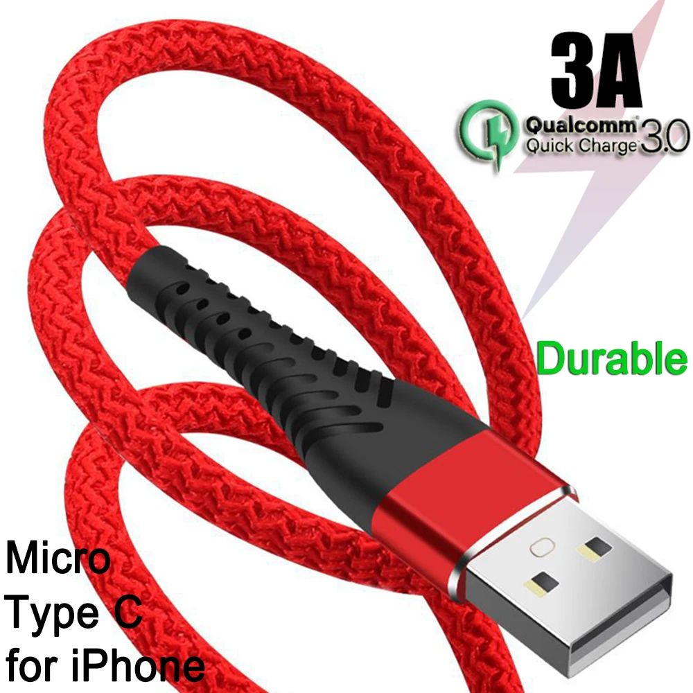 3A Тип USB C кабель типа C микро USB кабель 0,25 на возраст 1, 2, 3 м длинные мобильный телефон кабели с Зарядное устройство Type-C кабель USB-C кабели для передачи данных