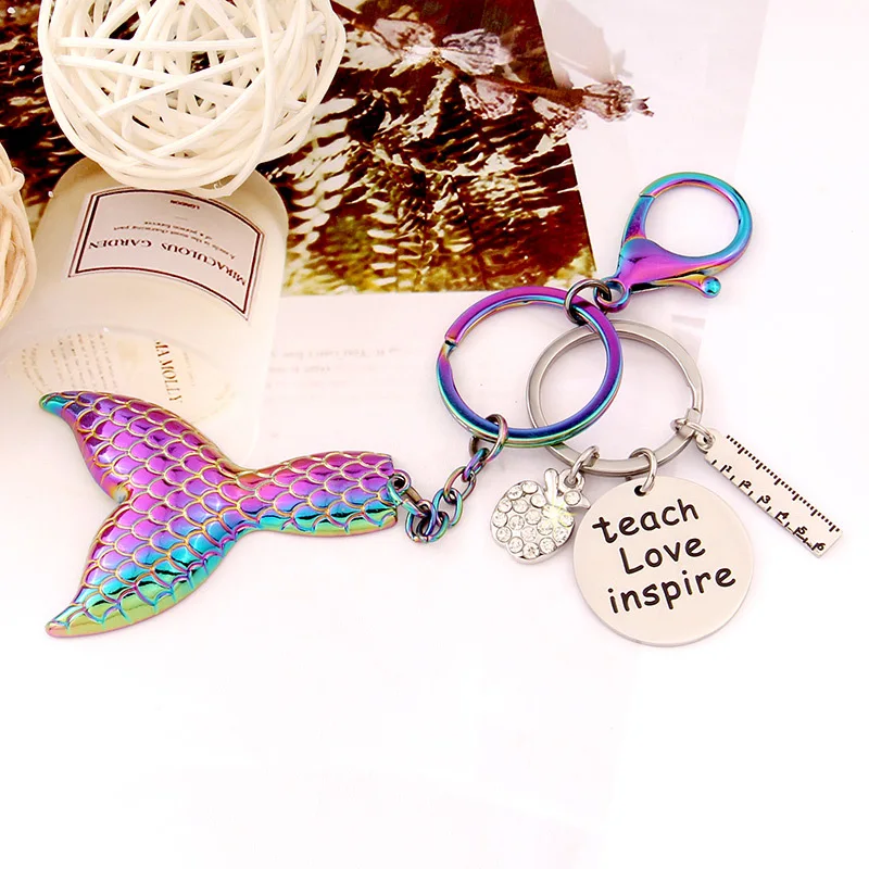 Трендовый цвет, брелок с хвостом русалки градиент цвета, металлический брелок для машины Уникальный креативный небольшой подарок, аксессуары для вечеринок