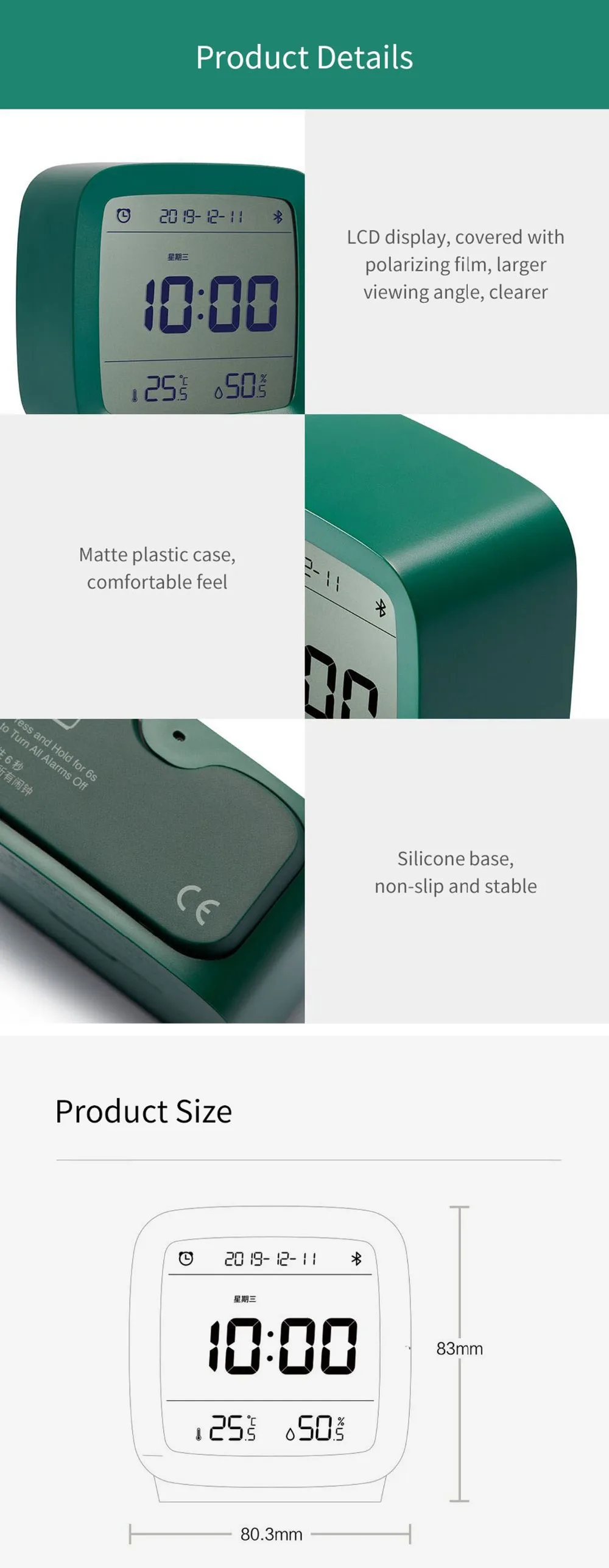 Будильник XIAOMI Cleargrass, Bluetooth, умный контроль температуры и влажности, ЖК-дисплей, регулируемый ночник