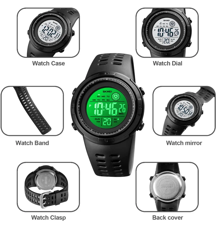 Часы SKMEI Мужские Цифровые для спорта на открытом воздухе, модные наручные со светодиодсветильник, водонепроницаемость 50 м, 1773