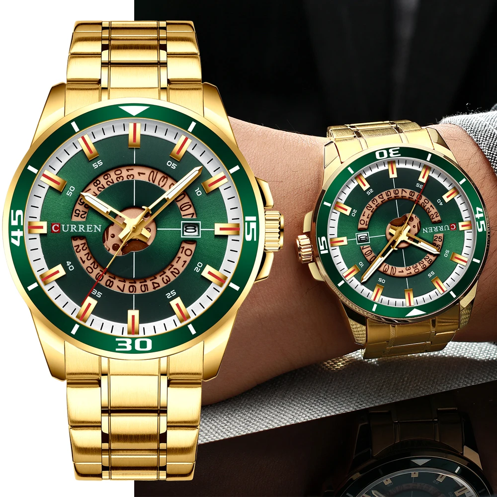 CURREN часы для мужчин золотые наручные часы из нержавеющей стали с датой повседневные деловые кварцевые мужские часы