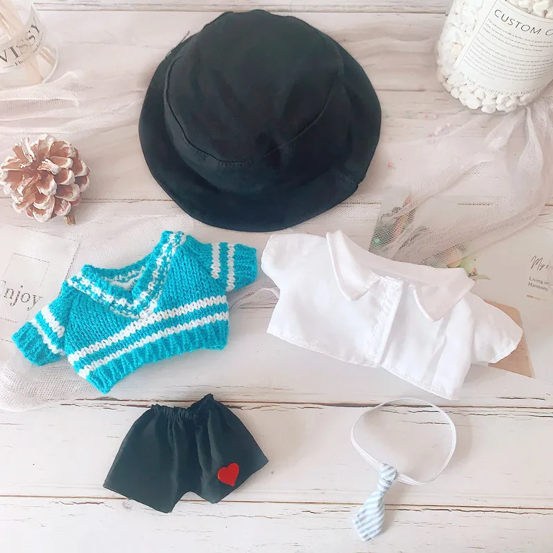 Одежда для куклы 20 см, синий свитер, черные штаны, рыбацкая шляпа, аксессуары Love Bean, свитер, шорты для любви Mo дао Zu Ши