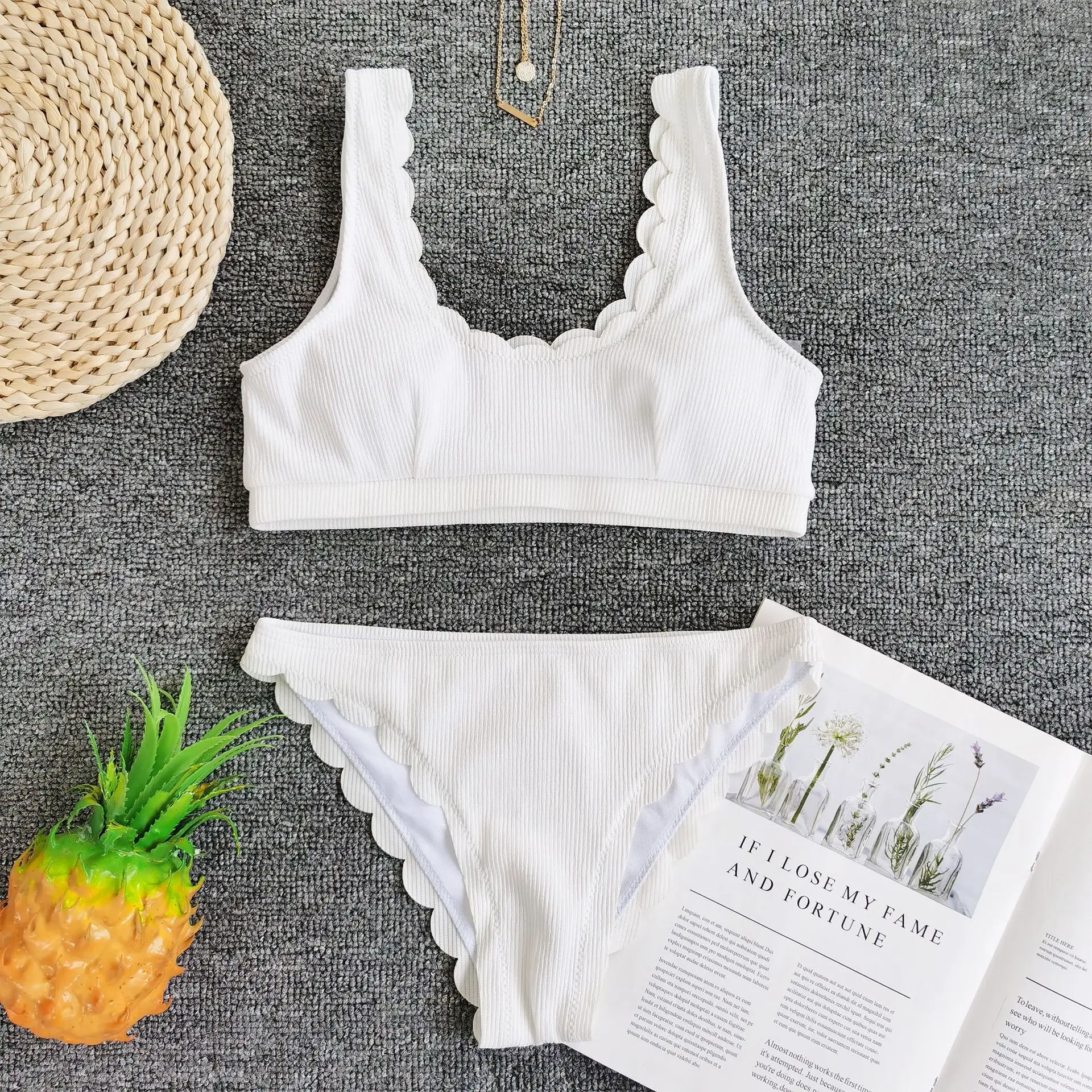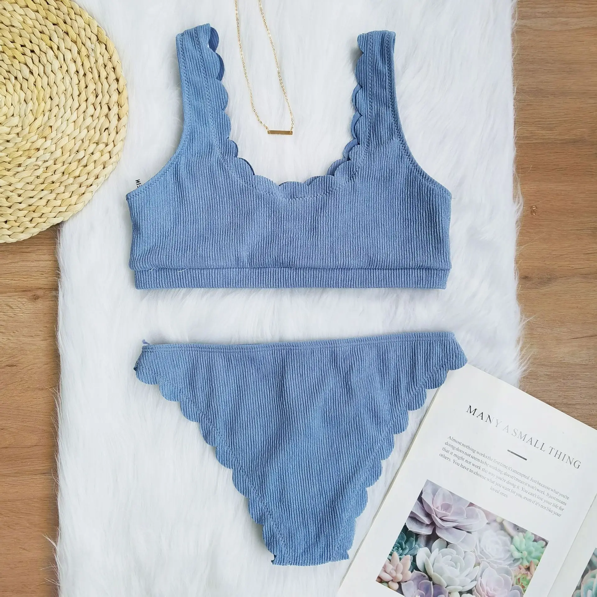 Купальник женский волнистый бикини 2020 сплошной цвет Холтер пляжна...
