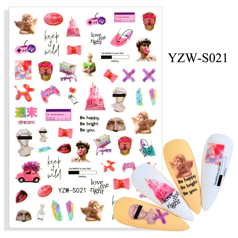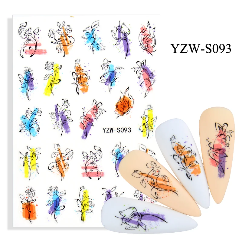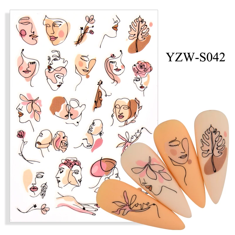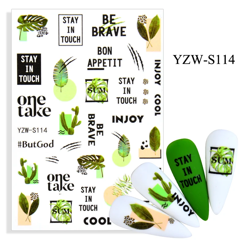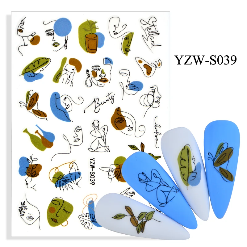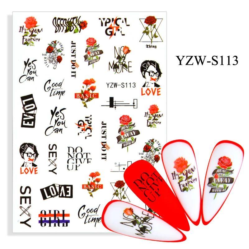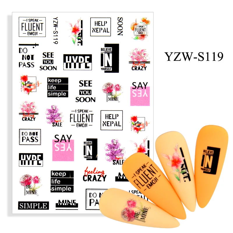 Наклейки для ногтей с буквами, цветами, растениями, лицевыми узорам...