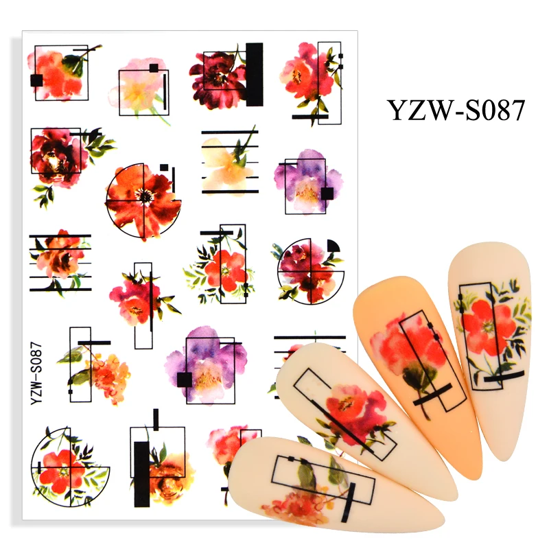 Цветы и листья для ногтей наклейки для ногтей комплект с буквенным ...