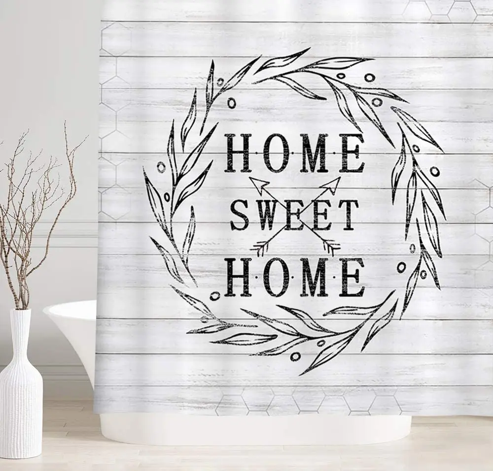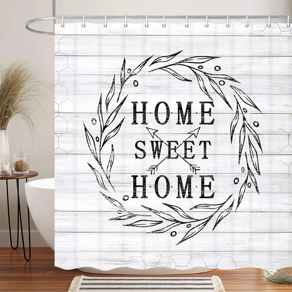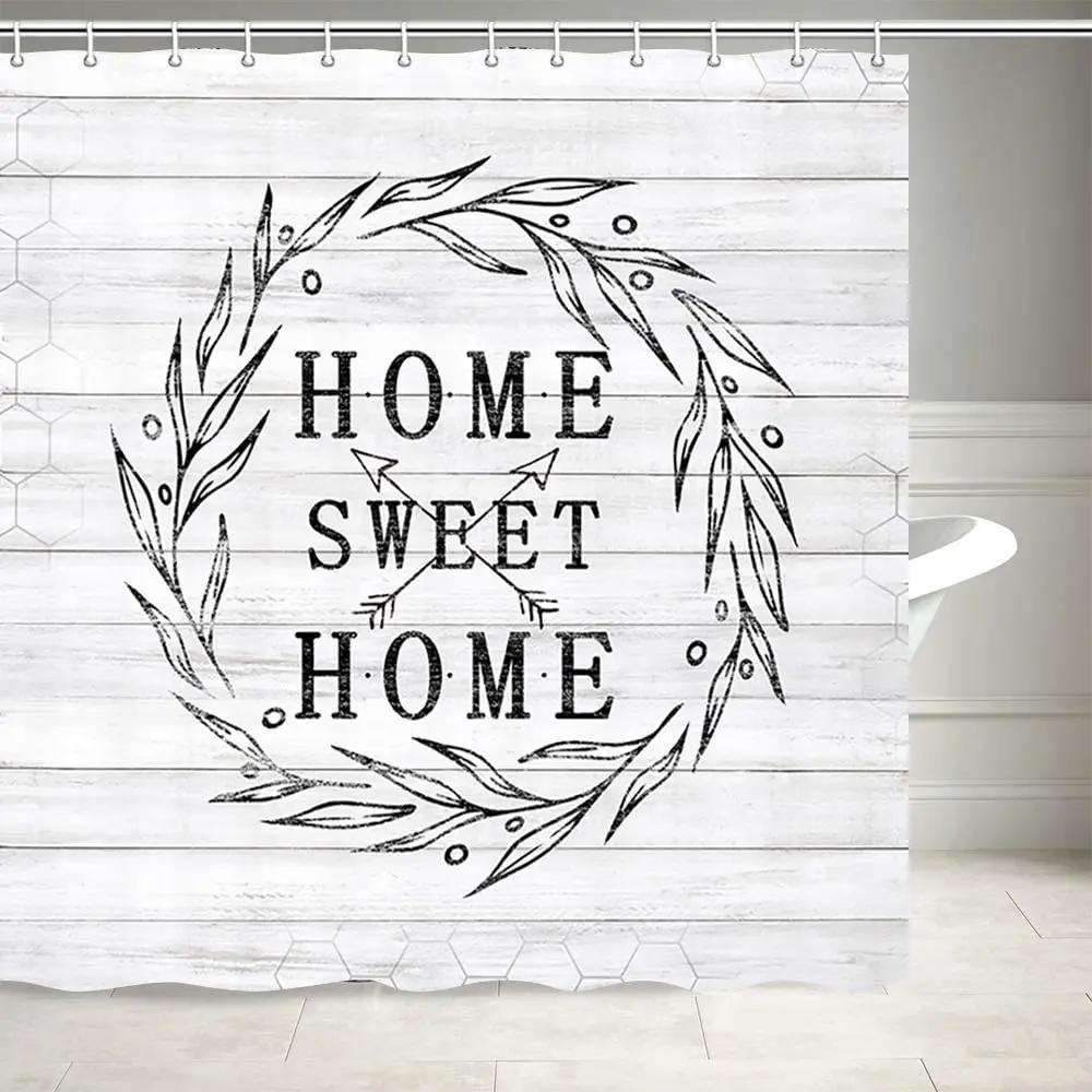 Занавеска для душа в сельском стиле, домашняя винтажная деревянная занавеска для душа с надписью Sweet Home, белый черный серый деревенский стиль