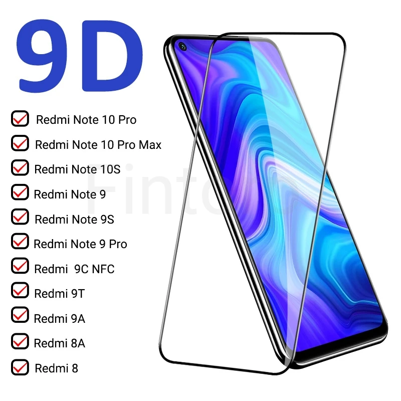 9D закаленное стекло для Redmi Note 10 9 8 Pro 7 10T 9S 10S полное ...