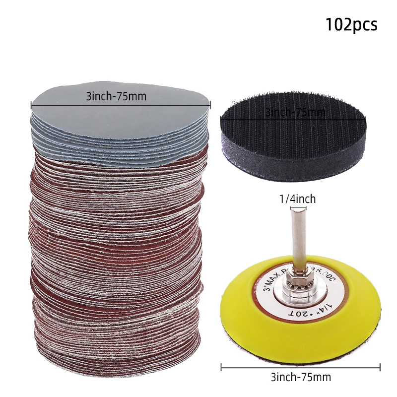 102Pcs 3 дюйма шлифовальные диски наждачная бумага 80-3000 Грит с 14 дюйма, хвостовая фреза с подложка и нанесите монтажную пену буферный коврик для вращающегося инструмента