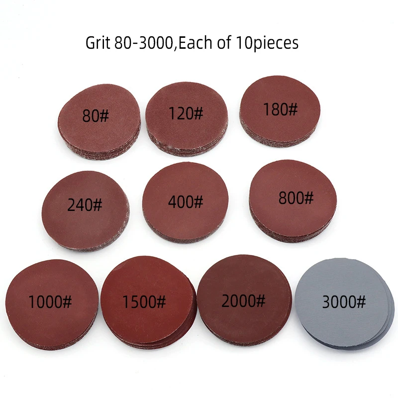 100 шт. шлифовальный диск, 10 решеток, 10 штук для каждой зернистости: 80/120/ 180/ 240/ 400 /800 /1000 /1500/2000 /3000;+ 1 подкладка и 1 Поликарбонат