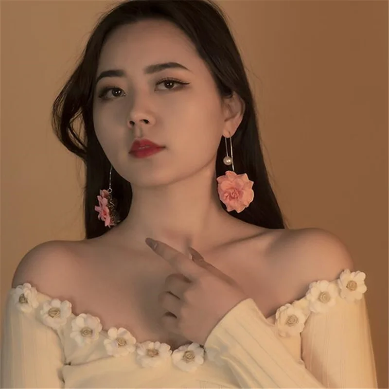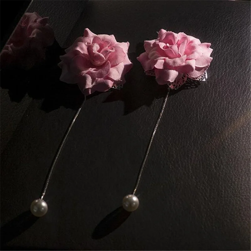Весенние красные, розовые, белые, розовые, бархатные висячие серьги FYUAN, длинные серьги с жемчугом для женщин, свадебные украшения для невесты