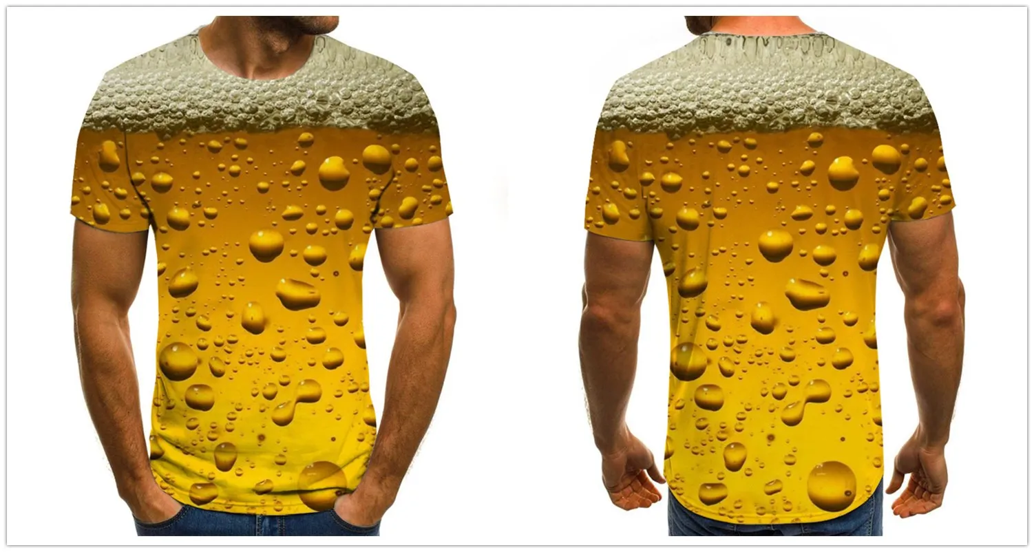 Футболка мужская с 3D-принтом пива, модный топ с круглым вырезом и ...