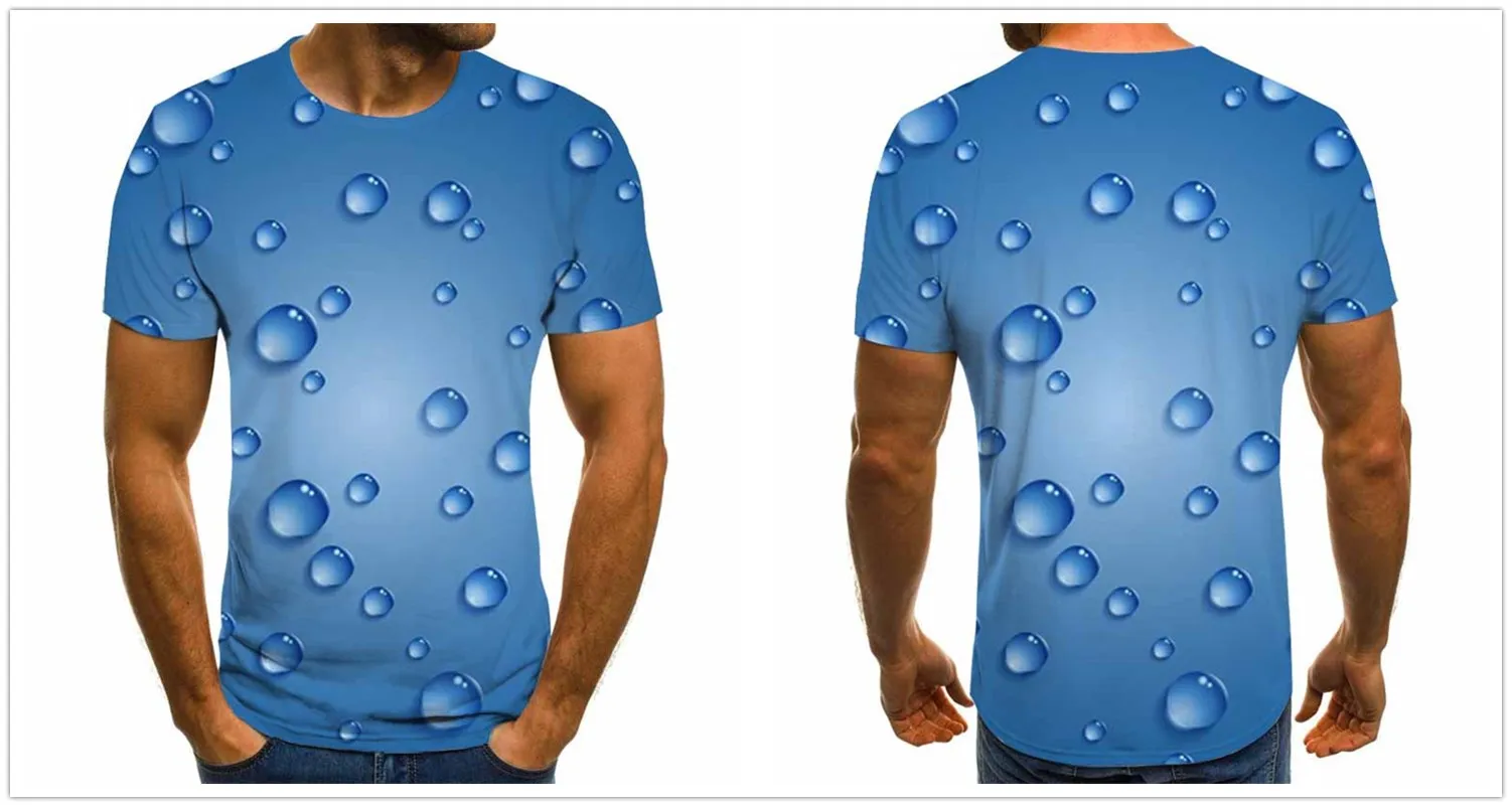 2021 новый летний 3D с трехмерной аппликацией в виде Новинка круг с рисунком в виде капель дождя Мужская мода 3D футболка XXS-6XL
