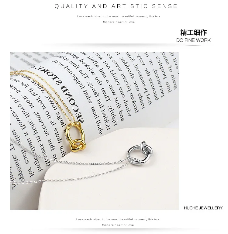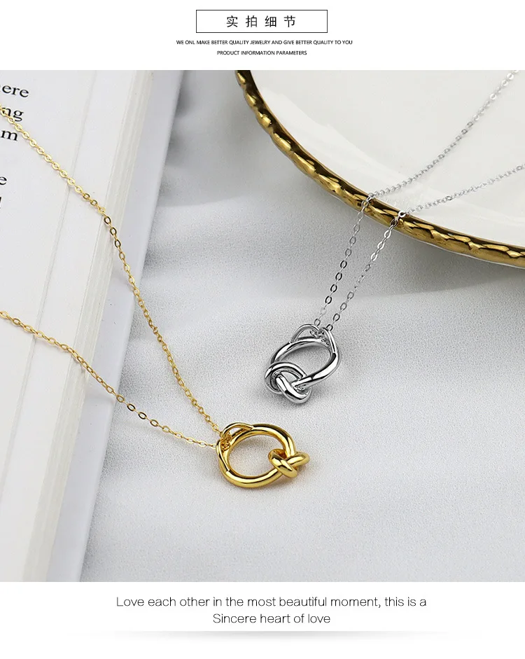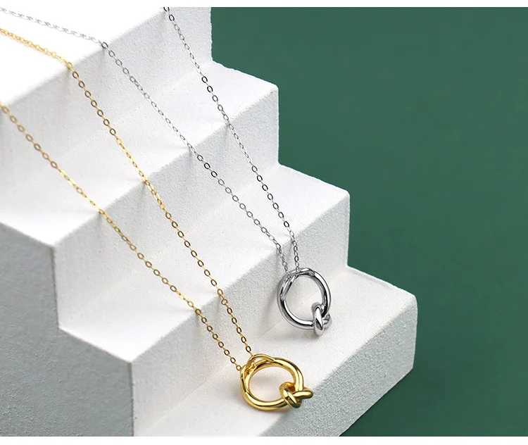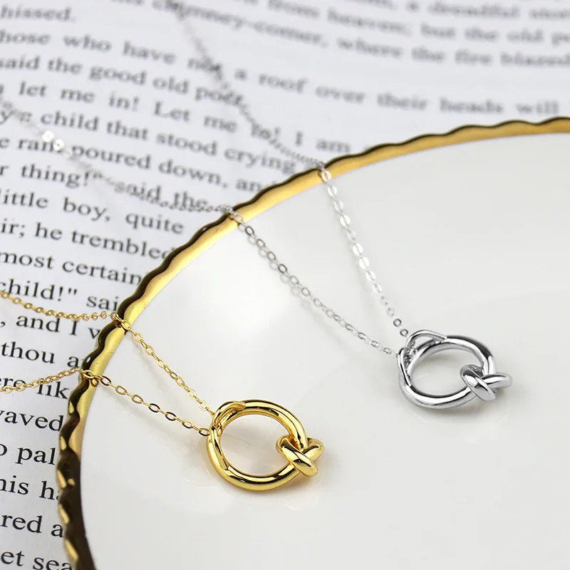 Кольцо XIYANIKE серебряного цвета с узлом, кольцо с кулоном, ожерелье, женская мода, темпераментная простая Золотая бижутерия, оптовая продажа