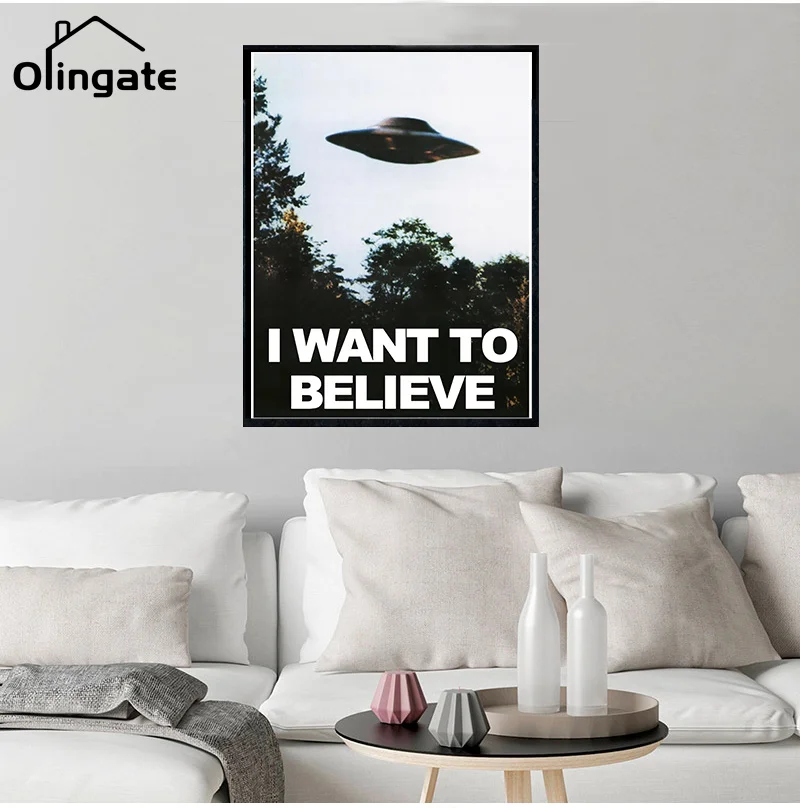Холст НЛО ТВ серия Печать холст Картина я хочу верить-X файлы искусство шелк или декоративная картина домашний декор