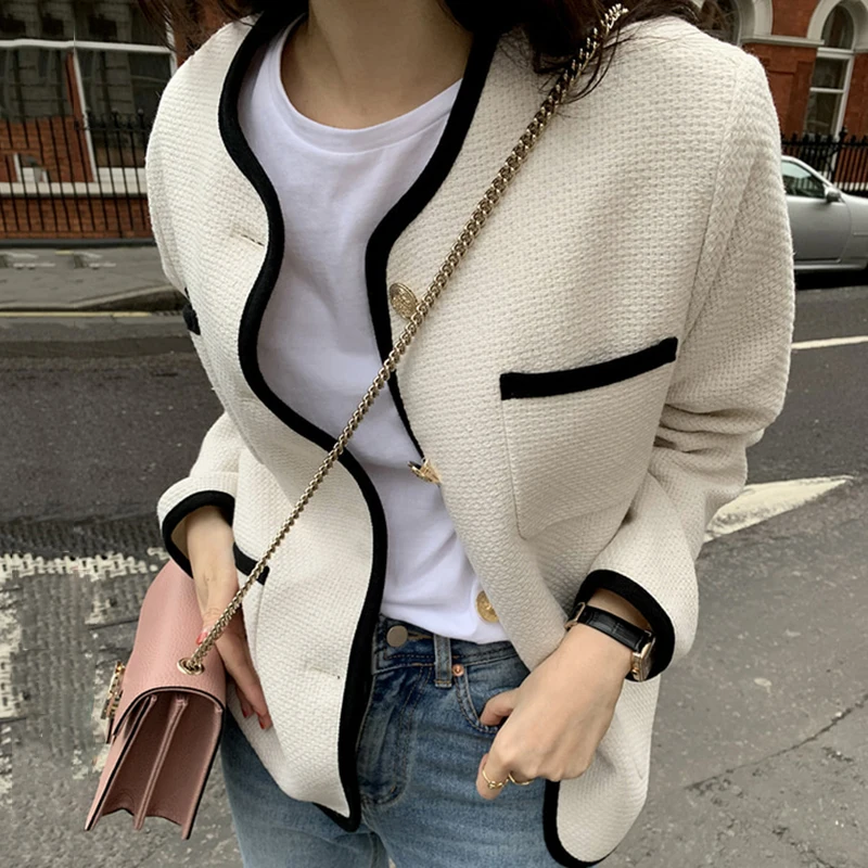 Женская куртка с круглым вырезом, Корейская версия, простая маленькая куртка контрастных цветов, изысканная куртка