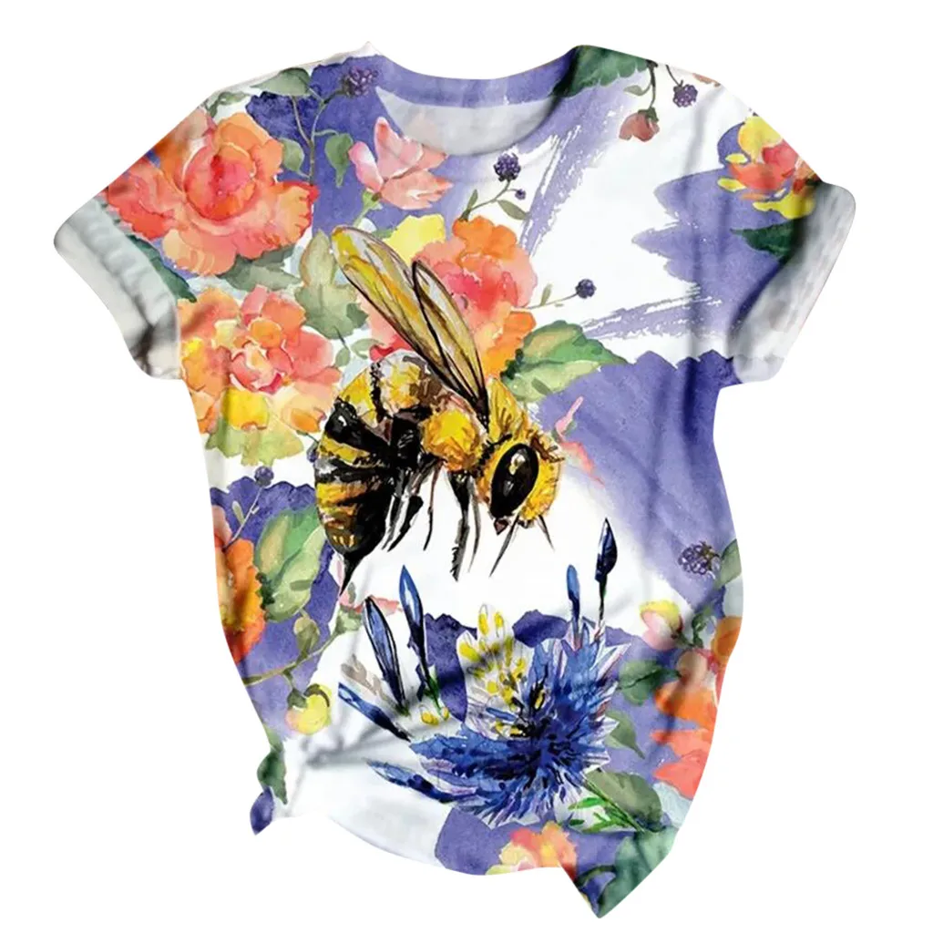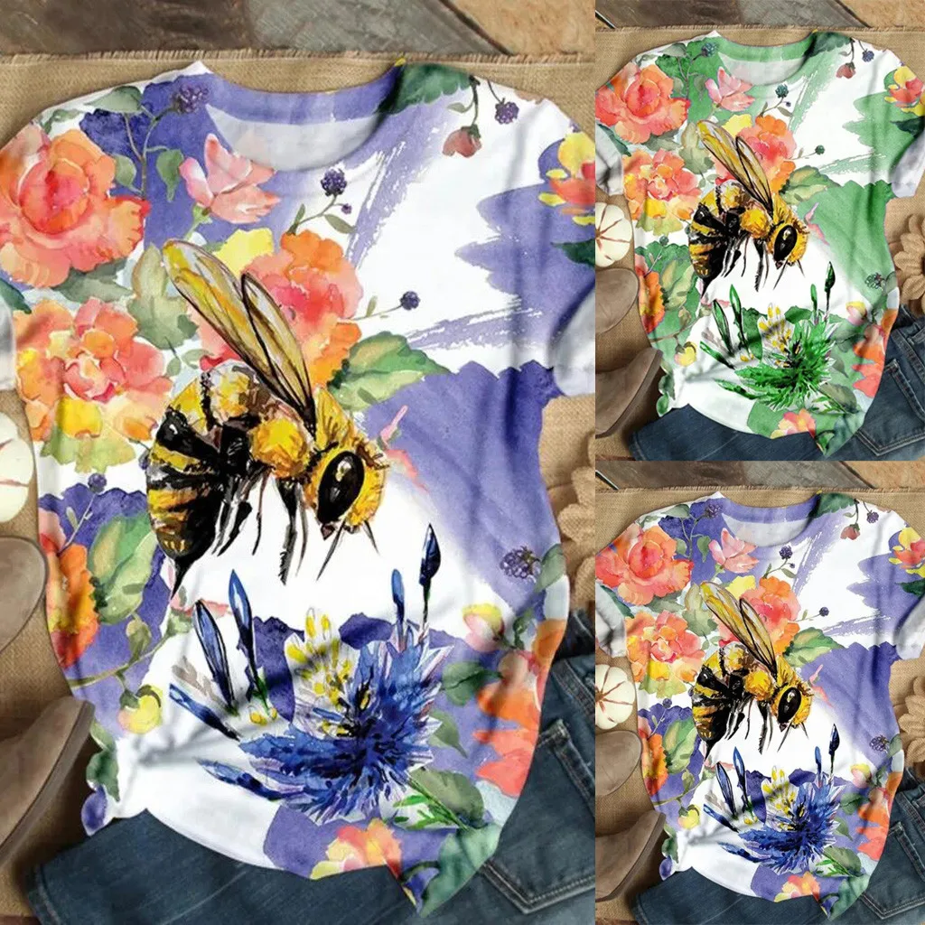 Модная женская одежда с круглым вырезом и короткими рукавами с принтомПовседневная одеждаФутболка; Блузка; Топы