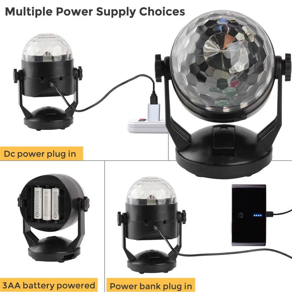 Вращающийся Диско-Шар со звуком DJ вечерние светильник с питанием от s/USB разъем в портативный RGB светодиодный сценический светильник для Рождества, свадьбы, вечерние