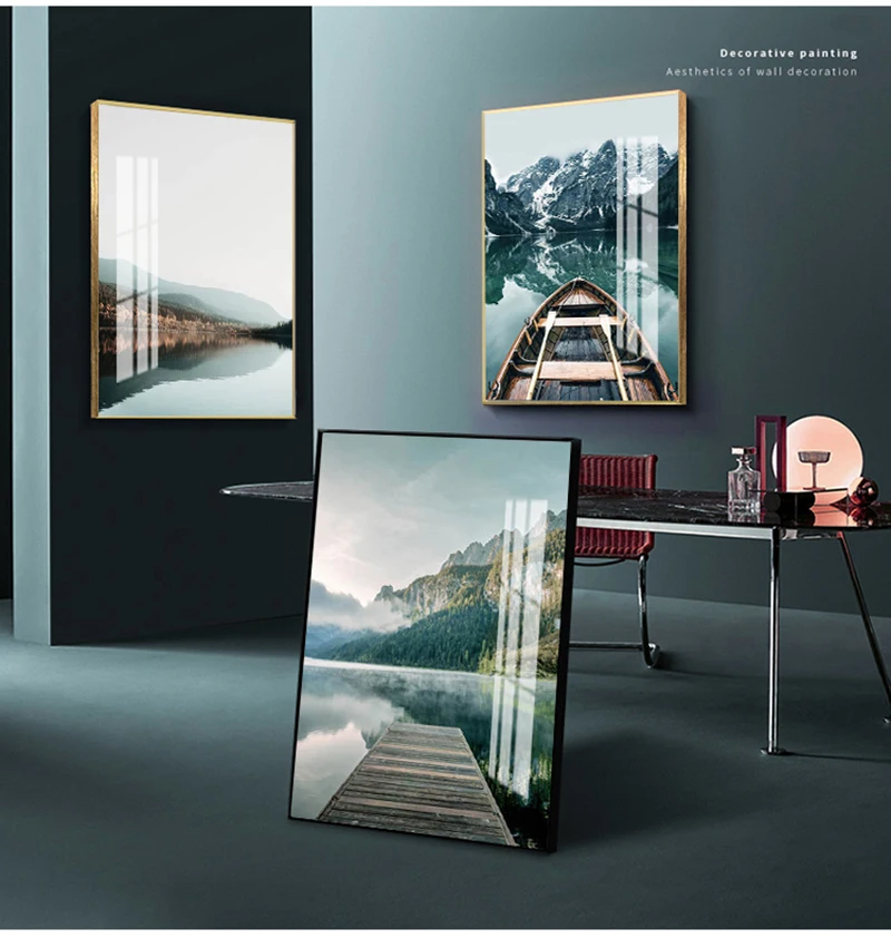 Настенный постер в скандинавском стиле с изображением природы, пейзажа, гор, озера, лодки, декоративная картина в скандинавском стиле, Современное украшение для дома