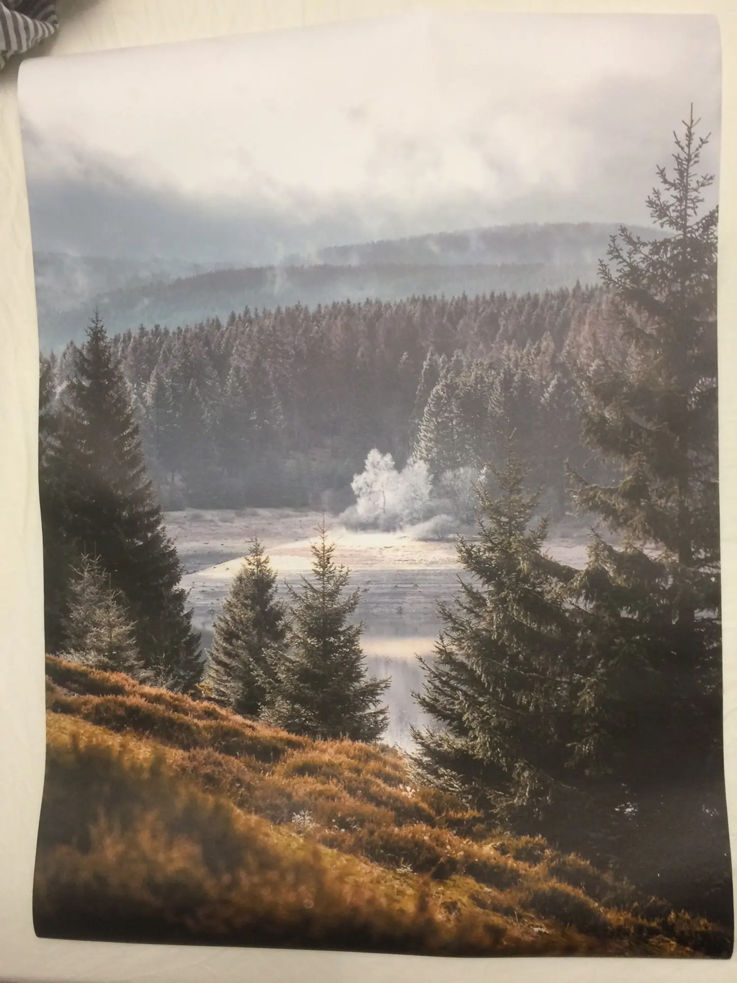 Скандинавский туман лес олень животное холст настенная живопись гор...