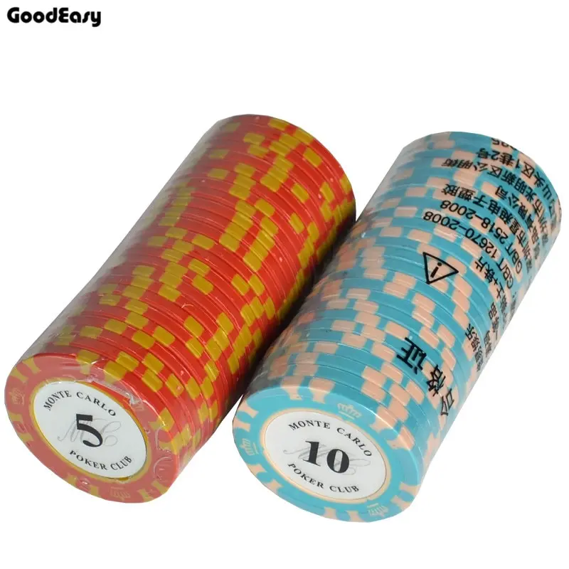 Фишки для покера из глины, 25 шт.лот, казино, Корона Монте-Карло, внутренний металл с отделкой, наклейка, разные цвета, фишки для игр Baccarat, Настраиваемые