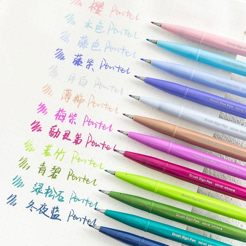 Японская сенсорная кисть Pentel, ручки, ручка, гибкий наконечник, 24 цвета, пастельныеобычные цвета, товары для рукоделия