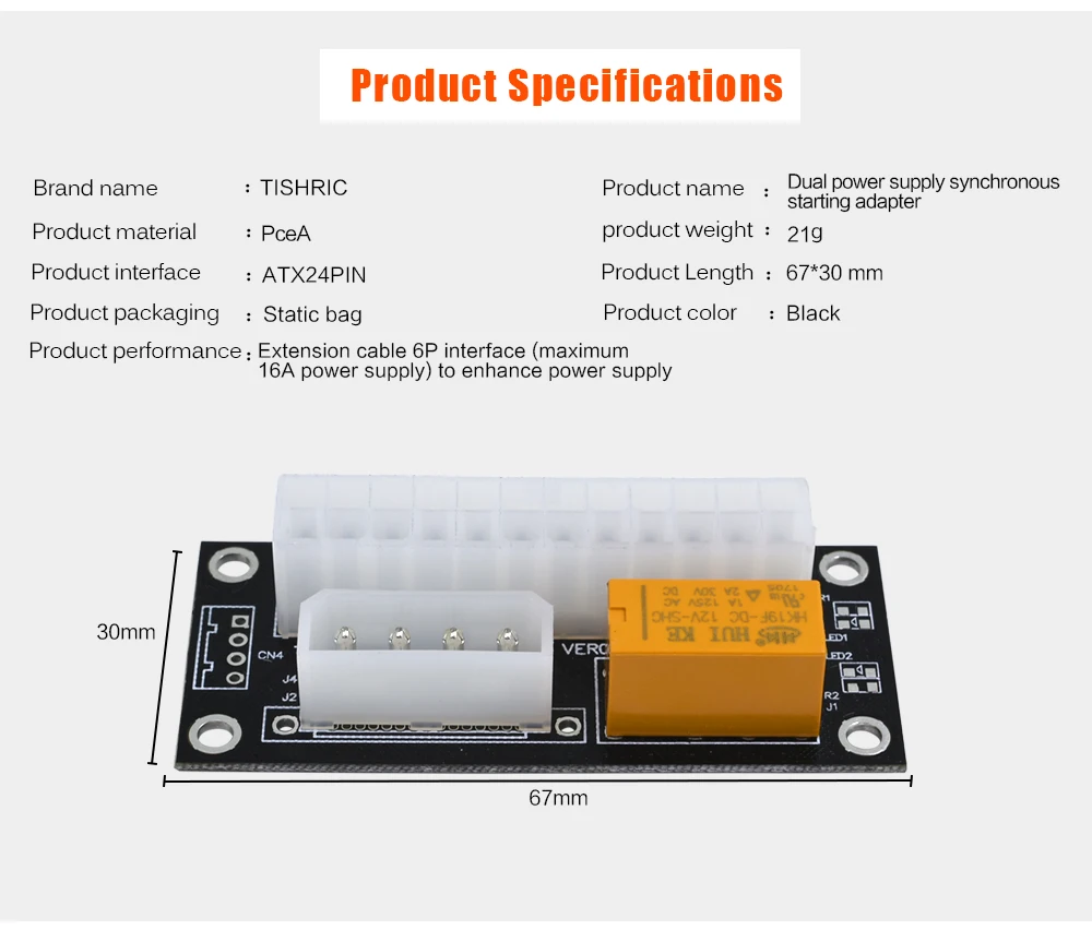 Адаптер питания ATXSATA Molex 24Pin 24P, тройное реле, плата синхро...