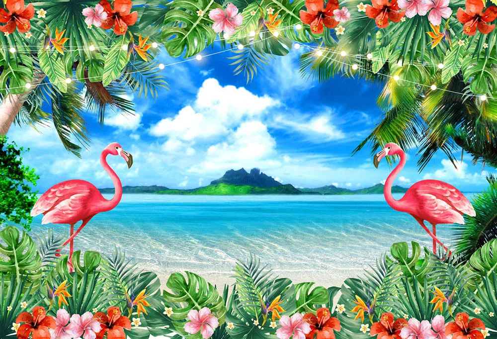 Фон для фотосъемки с изображением фламинго, Гавайского острова, Алоха, Луау, тропического пляжа, дня рождения, детского душа