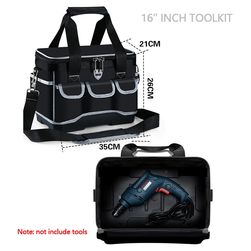 Особенности: водонепроницаемый. Износостойкий. Устойчив к грязи. Устойчивость к проколам. Легко моется. Не деформируется. Вместительный встроенный карман для удобного хранения Описание: Материал: оксфордская ткань 1680D. Характеристики дна из армированного полипропилена: 14 дюймов/16 дюймов/19 дюймов/20 дюймов Размер: 14 дюймов (20*23*30 см) 16 дюймов (21*26*35 см) 19 дюймов (23*30*41 см) 20 дюймов (28*34*43 см посылка: 1 шт. x сумки для инструментов