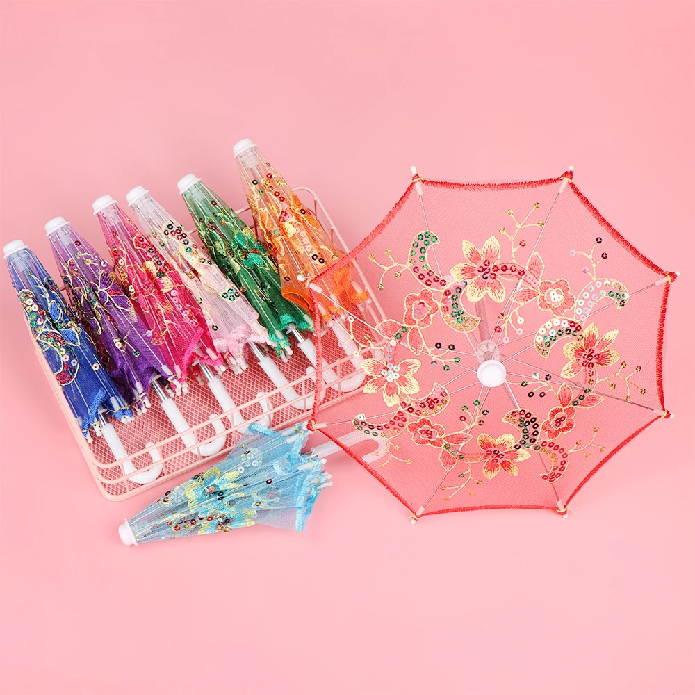 Мини-Зонтики с вышивкой, кружевной зонтик для кукол ручной работы, ...