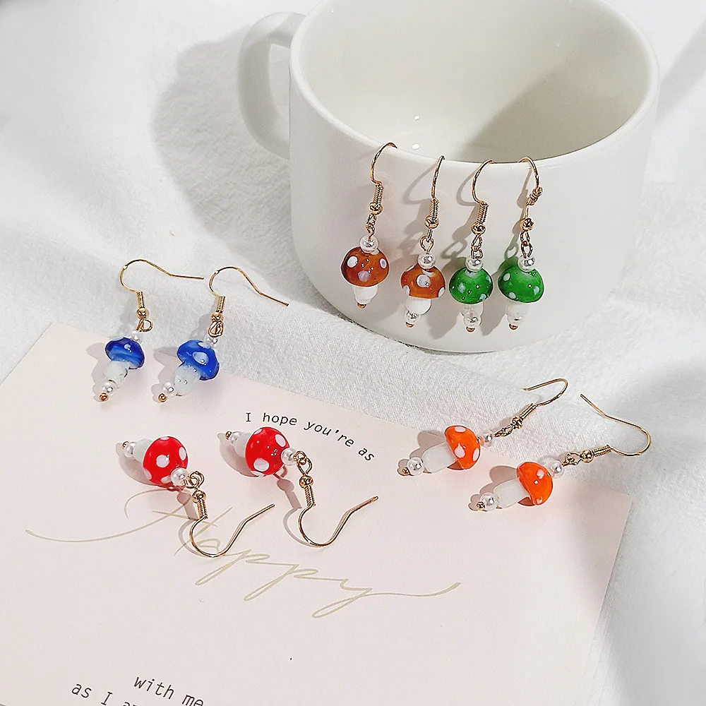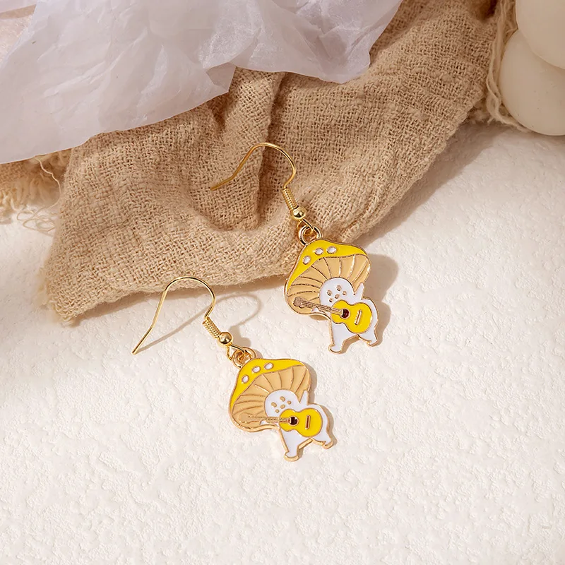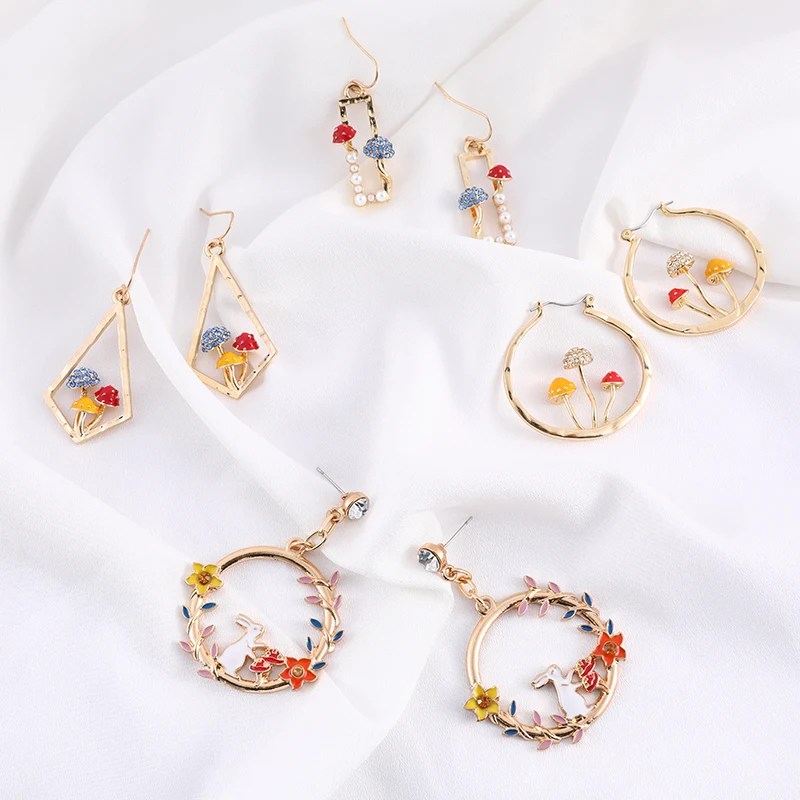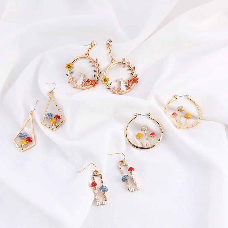 Уникальные серьги для женщин, милые серьги золотого цвета в форме грибов, модные Висячие серьги для девочек, милые аксессуары, эффектные ювелирные изделия, подарок 2020