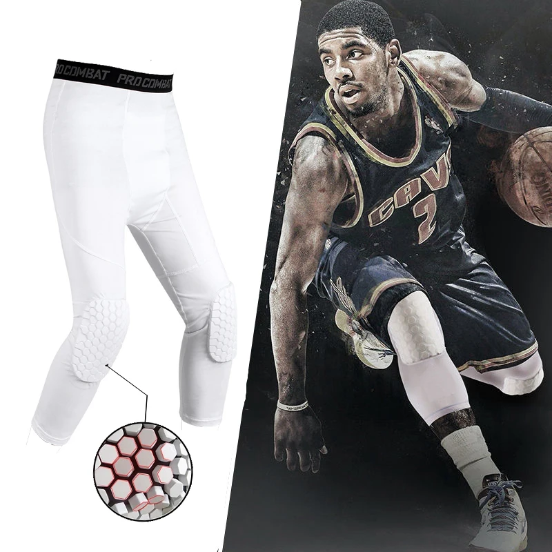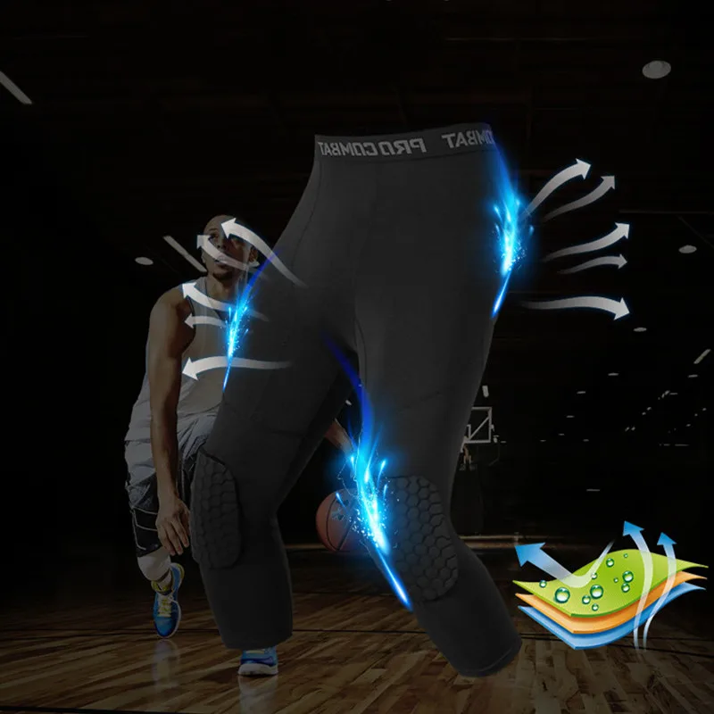 Мужские спортивные колготки для бега, компрессионные брюки до колена с защитой от столкновений, быстросохнущие высокоэластичные леггинсы для тренировок в тренажерном зале и фитнеса, 34