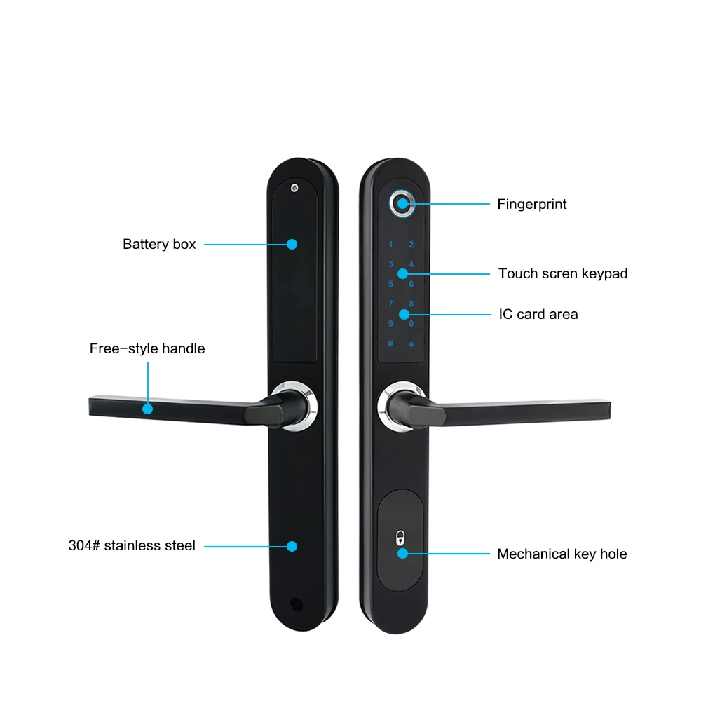 100% водонепроницаемый Антикоррозийный материал из алюминиевого сплава Супер маленькая блокировочная панель Европейский врезной (3585/4585/6085 врезной опционально) С интеллектуальным отпечатком пальца, кодом, M1 картой, функцией ключа Высокая безопасность Супер C блокировочный сердечник, и скрытый механический ключ!