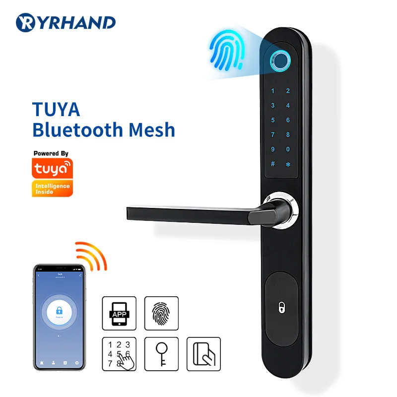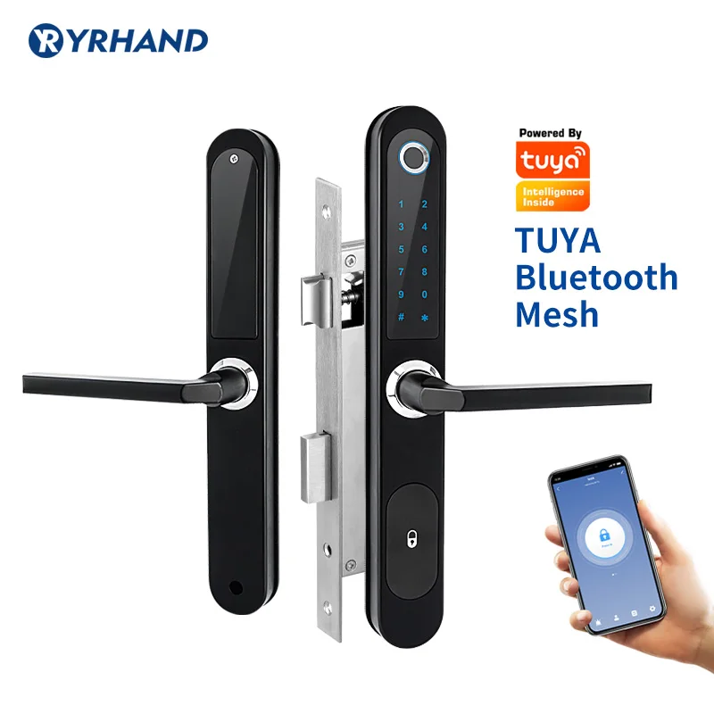 Дверные замки Tuya Smart Life Биометрические с идентификацией по отпечатку пальца, Европейский электронный смарт-замок для дверей с RFID-картой и кодом для алюминиевых стеклянных дверей