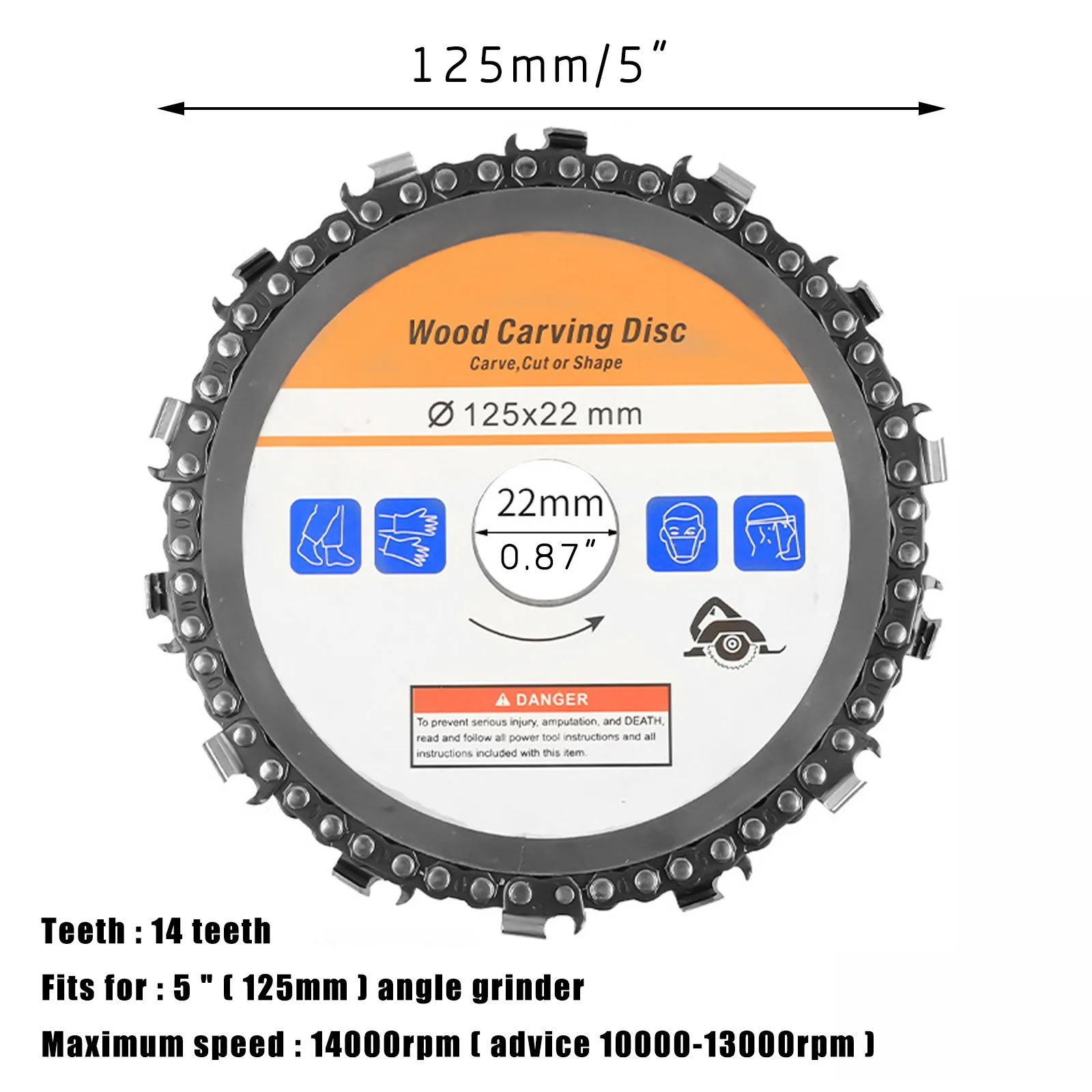 Шлифовальная дисковая цепная пила принимает Мышечная работа из резки, резьбы, удаления и скульптуры дерева, Пластик, лед и жесткая резина с их скоростью и маневренностью. В Лезвие цепной пилы удерживается между двумя стальными пластинами, которые обеспечивают Надежное крепление для резьбы. Независимо от зерна или узлов лезвие режет Через материал с легкостью для пользователя. Наш 14 зуб обеспечивает гладкую «готовую» поверхность, которая отлично подходит для минимального шлифования после этого. Цепи могут быть заточены с помощью пилы или заменены по мере необходимости. Отлично подходит для изогнутой работы, как внутри чаши, для быстрого удаления отходов. Предупреждение: не рекомендуется использовать функцию блокировки переключателя на любом шлифовальном станке. Это может привести к тяжелой травме или даже смерти. Подходит для углового шлифовального станка 5 " (125 мм)Характеристики: