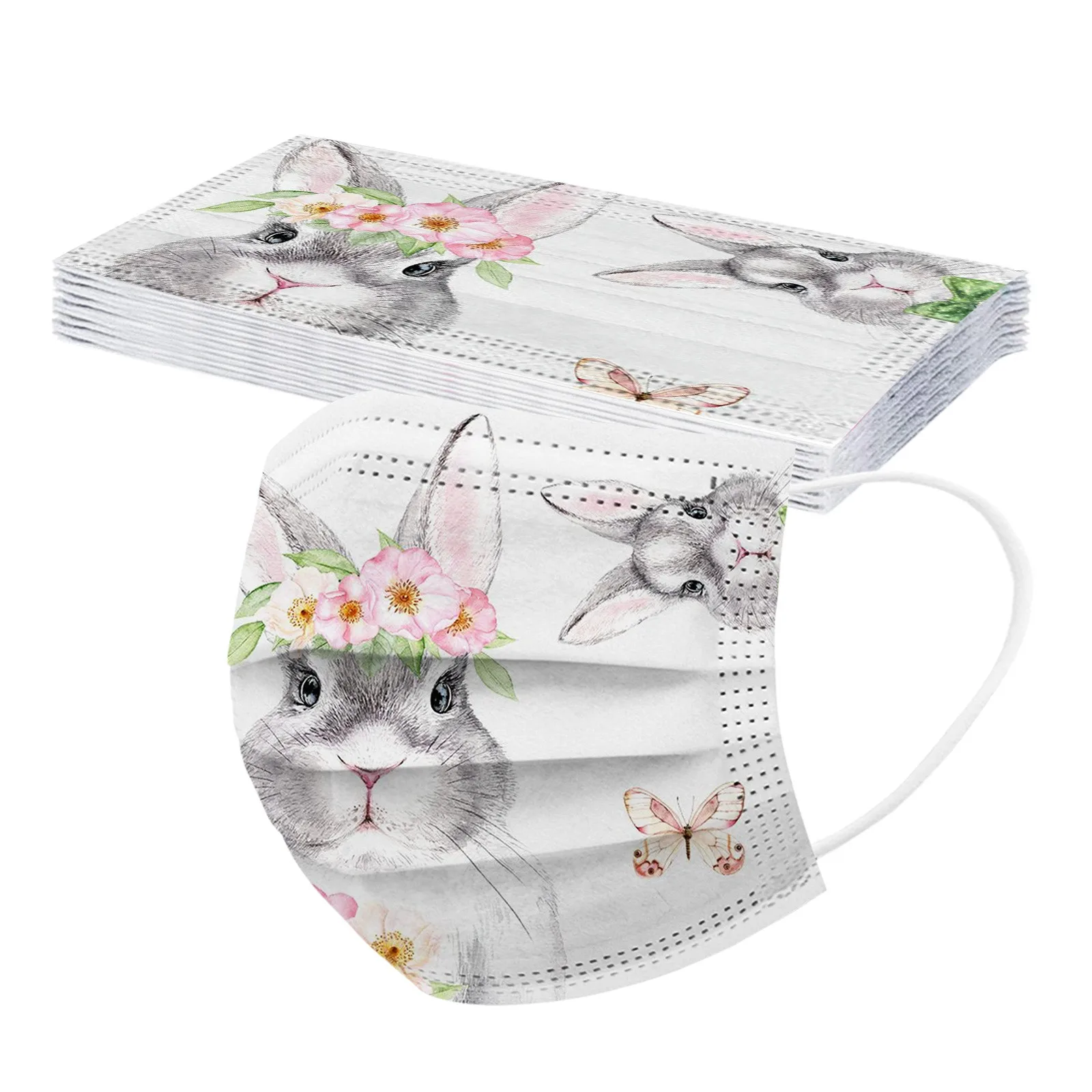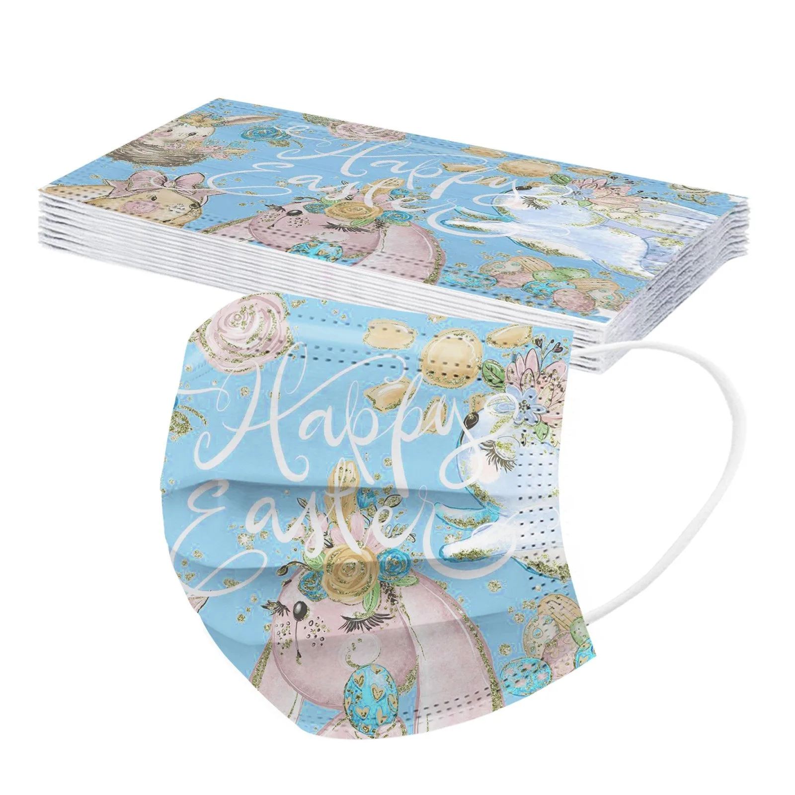 Одноразовая маска mascarillas для взрослых, трехслойная Защитная дышащая многоразовая маска с принтом пасхальных зайчиков и яиц