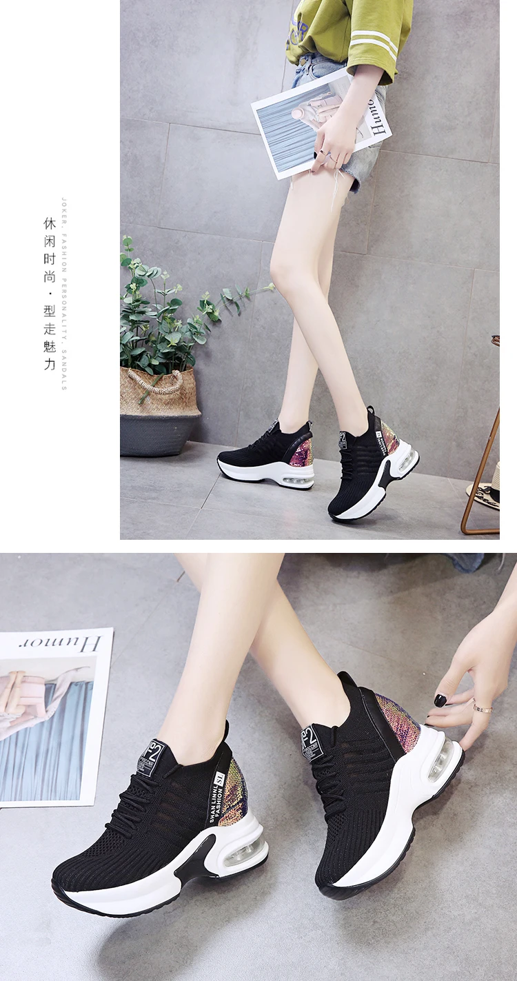 Женские кроссовки на высокой танкетке, летняя дышащая повседневная ...