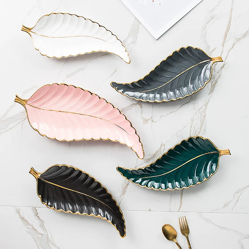 Поднос керамический с листьями для сушитортаконфетстоловой посуды, поднос для украшений, тарелка для хранения домашних украшений, кухонные тарелки