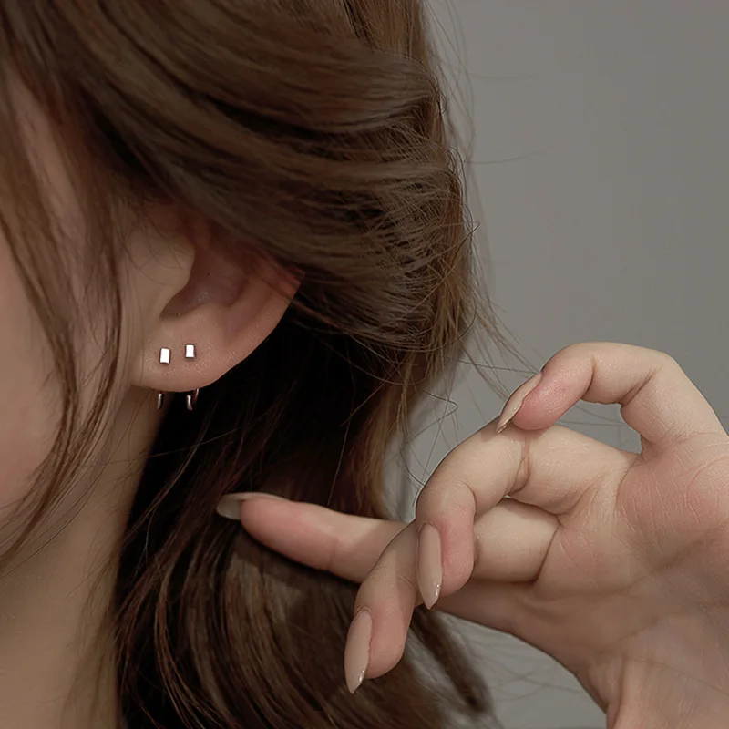 Простой минималистские небольшие Square Cube серьги-гвоздики с геом...