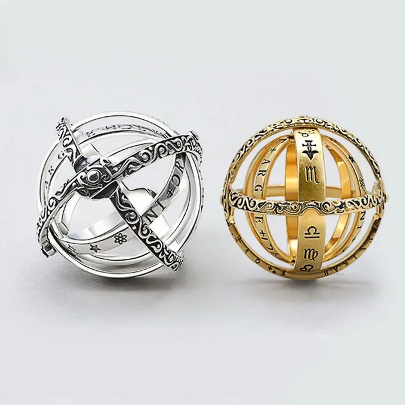 Кольцо на палец, деформируемое астрономическое складное резное старинное Золотое античное серебро для женщин и мужчин