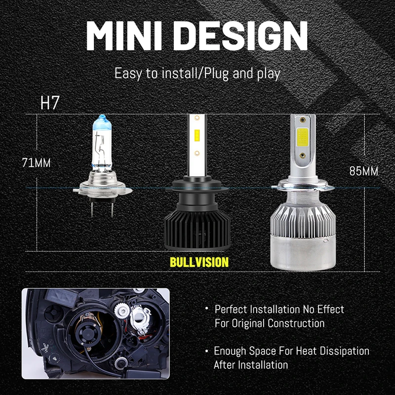 Светодиодные Автомобильные фары Bullvision H11 H7 H4 H1 H3 9005 900...