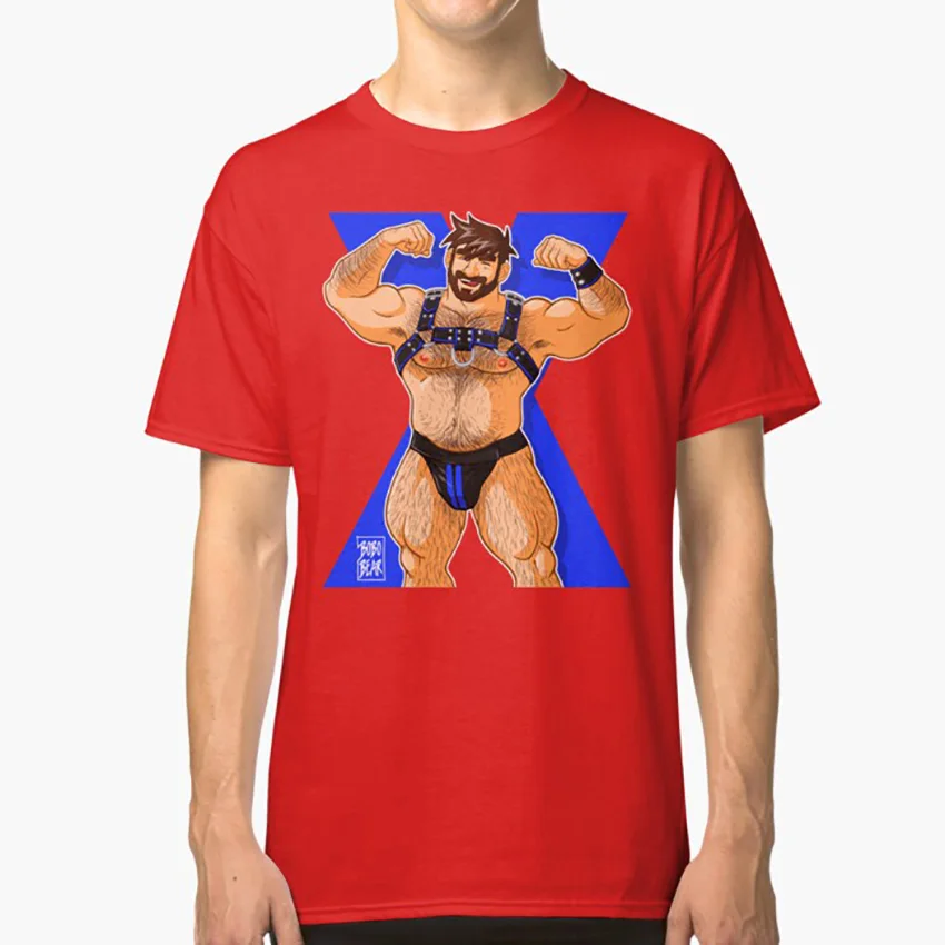 Голубая футболка с надписью Adam Harness, Bobobear bobearart, медведь Bobo, Медведь, медведь гей, медведь геев, гайарт, медведь-гордость