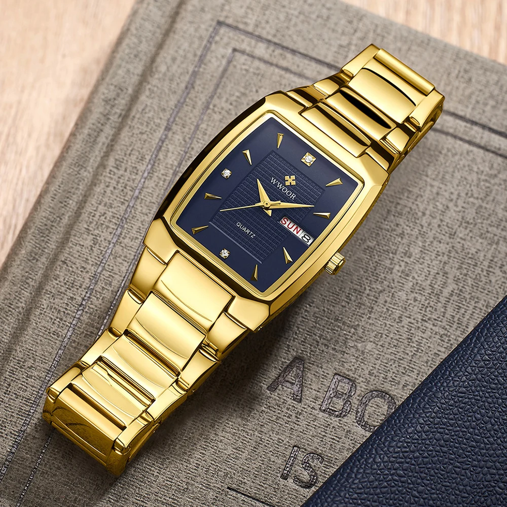Часы наручные WWOOR Мужские кварцевые, роскошные модные спортивные золотистые, с датой